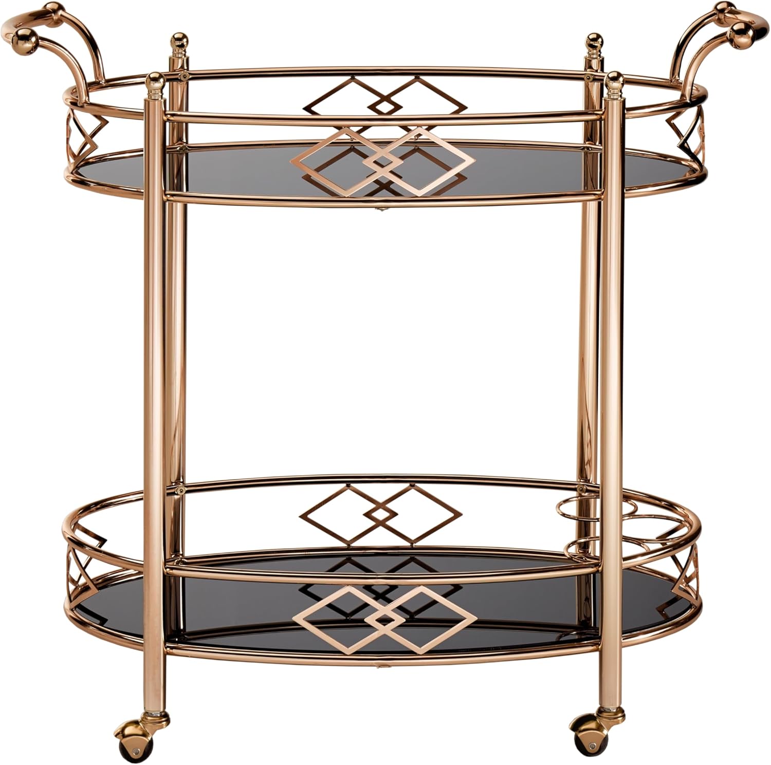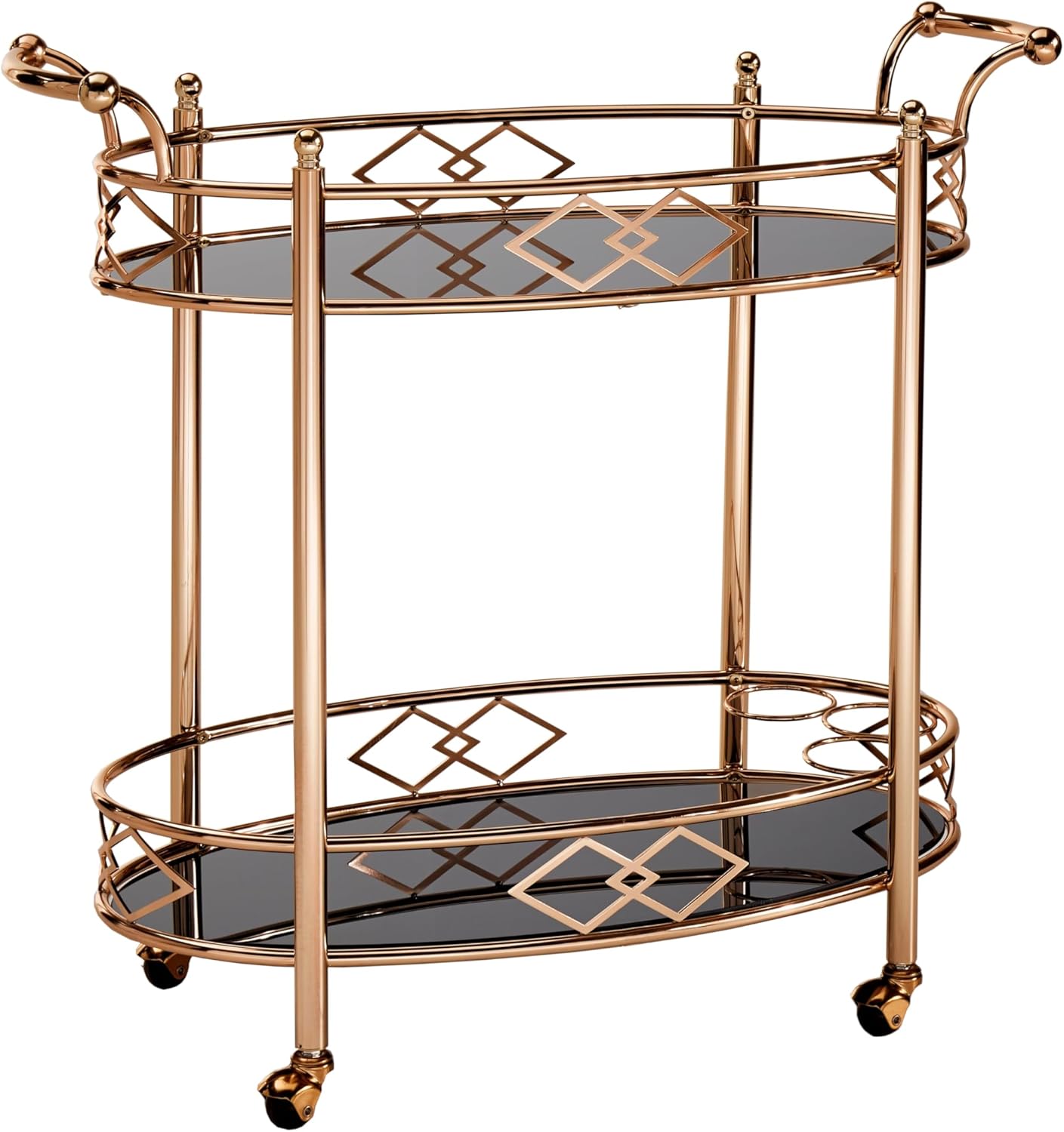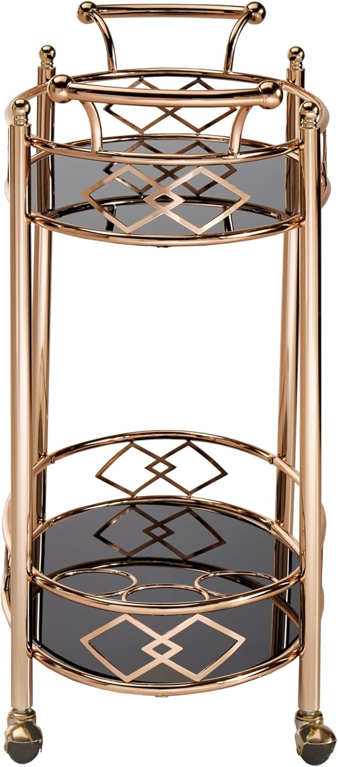 Inspire Q Metropolitan Rose Gold Metal Black Glass Bar Cart by Bold